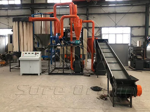 Triturando y separando aluminio y plástico para reciclar desechos de materiales compuestos de aluminio y plástico, como ACP (paneles compuestos de aluminio y plástico), blísters médicos, láminas de aluminio, etc.